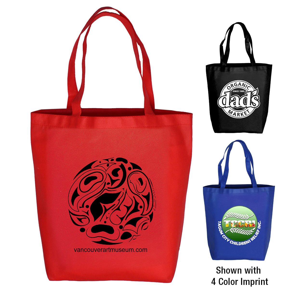 This economical, yet sturdy 80GSM Non-woven Polypropylene Grocery and Shopping Tote bag is recyclable and reusable. Extra comfortable cross-stitched 20” handle straps for added strength.