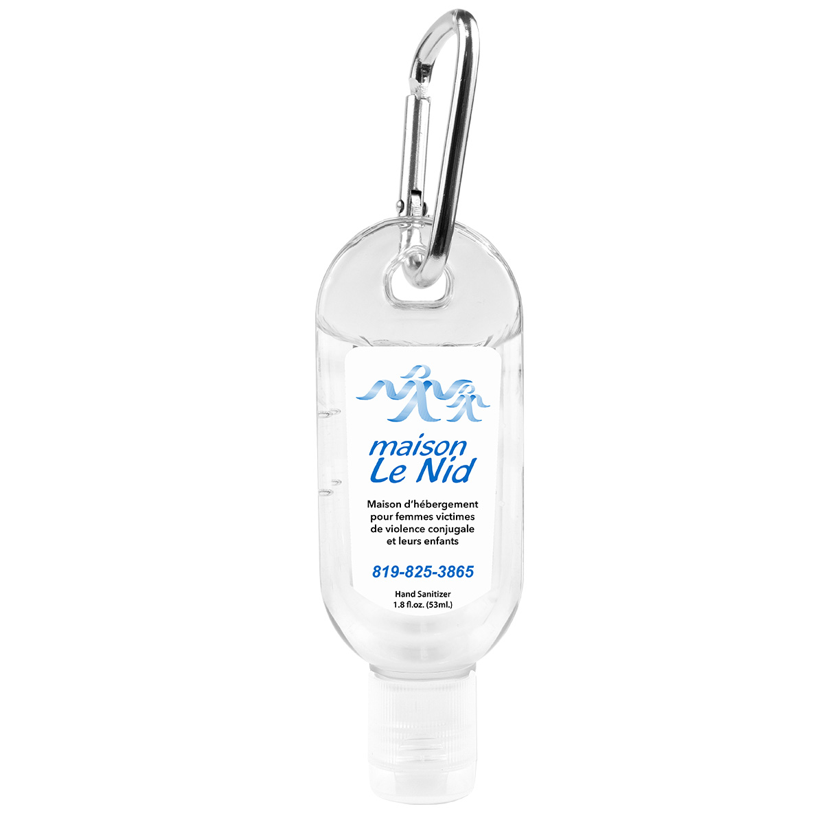 Use the carabiner to clip this bottle to your briefcase, backpack or purse and never leave home without it. The bottle contains 1.8 oz of citrus scented antibacterial sanitizer gel. Available with Spot Colour Imprint or Full Colour Label.