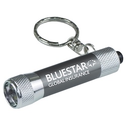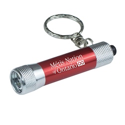 This keyholder keylight is metal, not plastic and features 3 bright white LED lights. Pricing includes a laser engraved imprint.