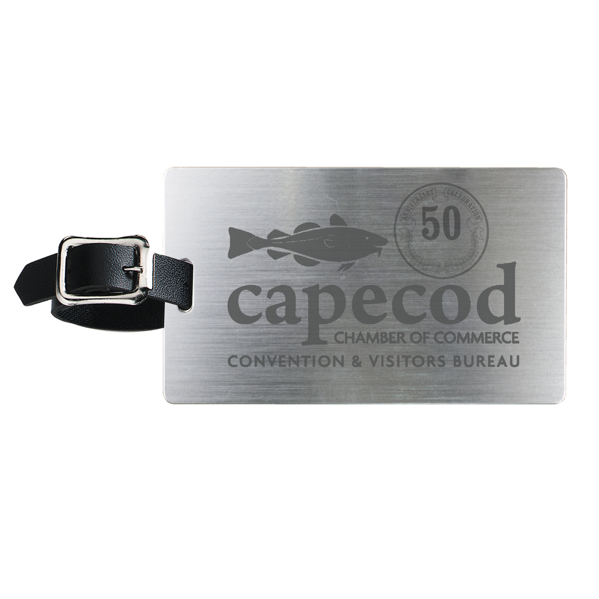 This economical brushed aluminum luggage tag is a first class bag tag with coach class pricing. It features a black leatherette luggage strap with silver accents. The back side of the tag features a clear slip in pocket to hold your business or ID card. Straps & ID cards bulk packed.