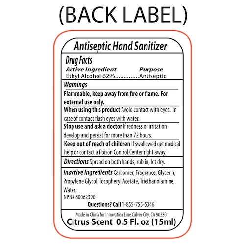 This convenient and compact size bottle contains .5 oz of antibacterial hand sanitizer gel. It fits easily into a pocket, briefcase or purse. Citrus Scented. Meets FDA standards. All sanitizer bottles include ingredient label on reverse side.