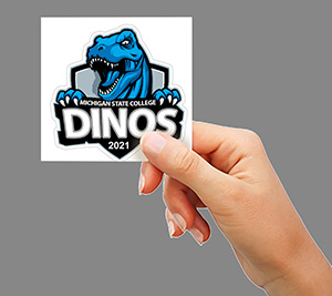 Our CustomCut™ Sticker/Decals are made with a Professional Grade White 6 Mil Matte Vinyl Material. Each Sticker is individually kiss cut to the contours of your custom logo design. There are No Die or Die Cutting Charges! They come in individual single sheets for easy distribution (as opposed to a continuous roll). For indoor and outdoor use, water resistant and removable for up to one year. (exposure to direct sunlight may accelerate fading). Pricing includes up to a full colour PhotoImage® digital imprint. All Sticker designs inside the Sheet require a 1/8” white border around the artwork design.