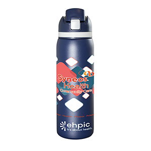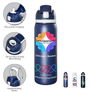 Meet the ‘Flex” 27 oz. double-wall stainless steel insulated bottle built for life on the run. With a single button press, the lid springs open and the straw pops up for effortless sipping -- or remove the straw and chug straight from the spout when you need refreshment fast. The screw on lid includes an integrated easy carry loop. BPA and lead free; FDA compliant. Prices include up to a full colour imprint on one side, both sides or a full wrap – no extra charges for additional colours!