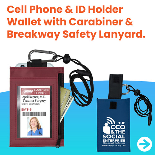After the tradeshow, this product doubles as a handy travel document holder. Use the clear front pocket to hold your drivers license, the zipper pocket for your passport, and the 2 tall pockets for boarding passes, other documents, or a cell phone.