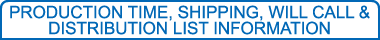PRODUCTION TIME, SHIPPING, WILL CALL & DISTRIBUTION LIST INFORMATION